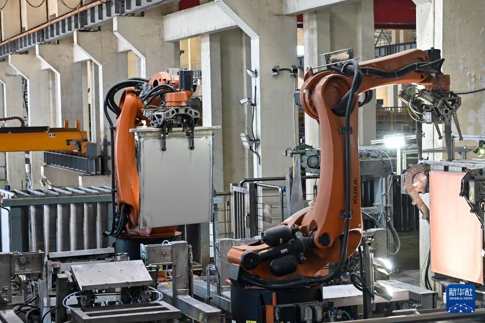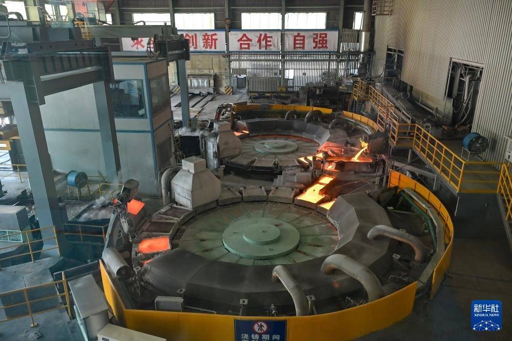 7月5日,在铜陵有色金属集团股份有限公司金冠铜业分公司双闪精炼车间,自动浇筑系统在工作。