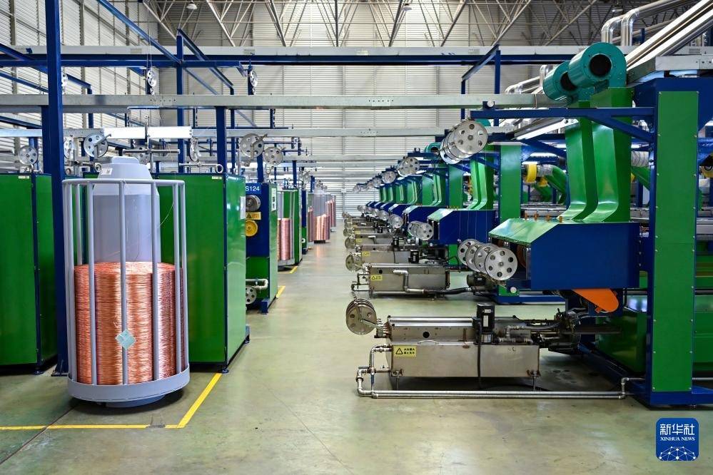 这是在铜陵精达漆包线有限公司生产车间拍摄的生产场景(7月4日摄)。