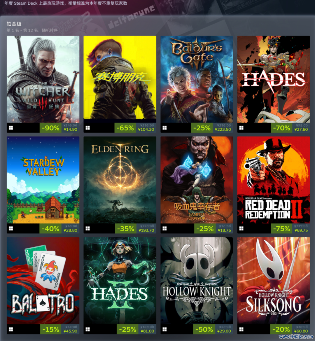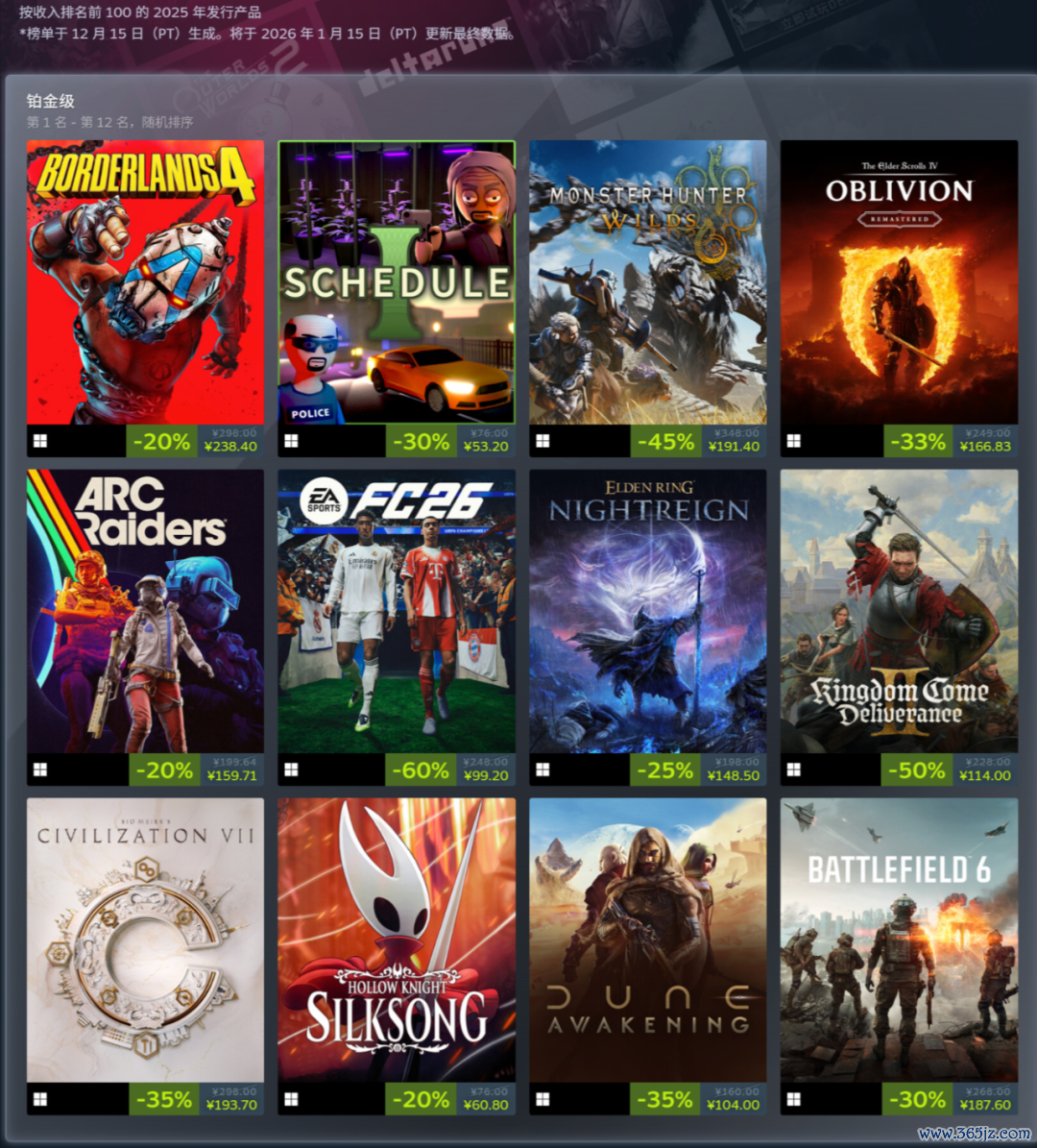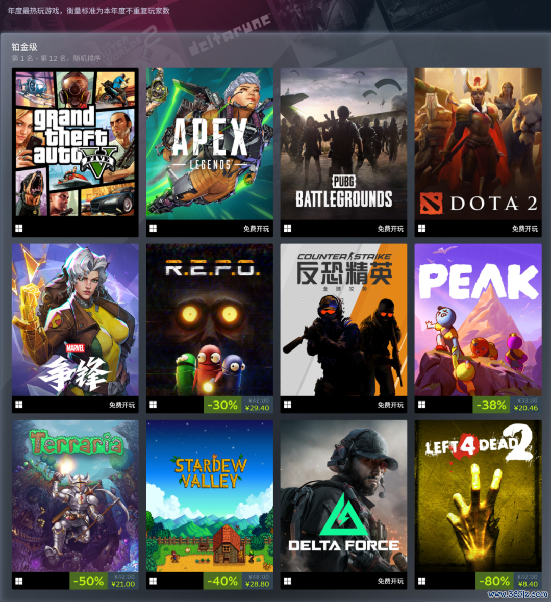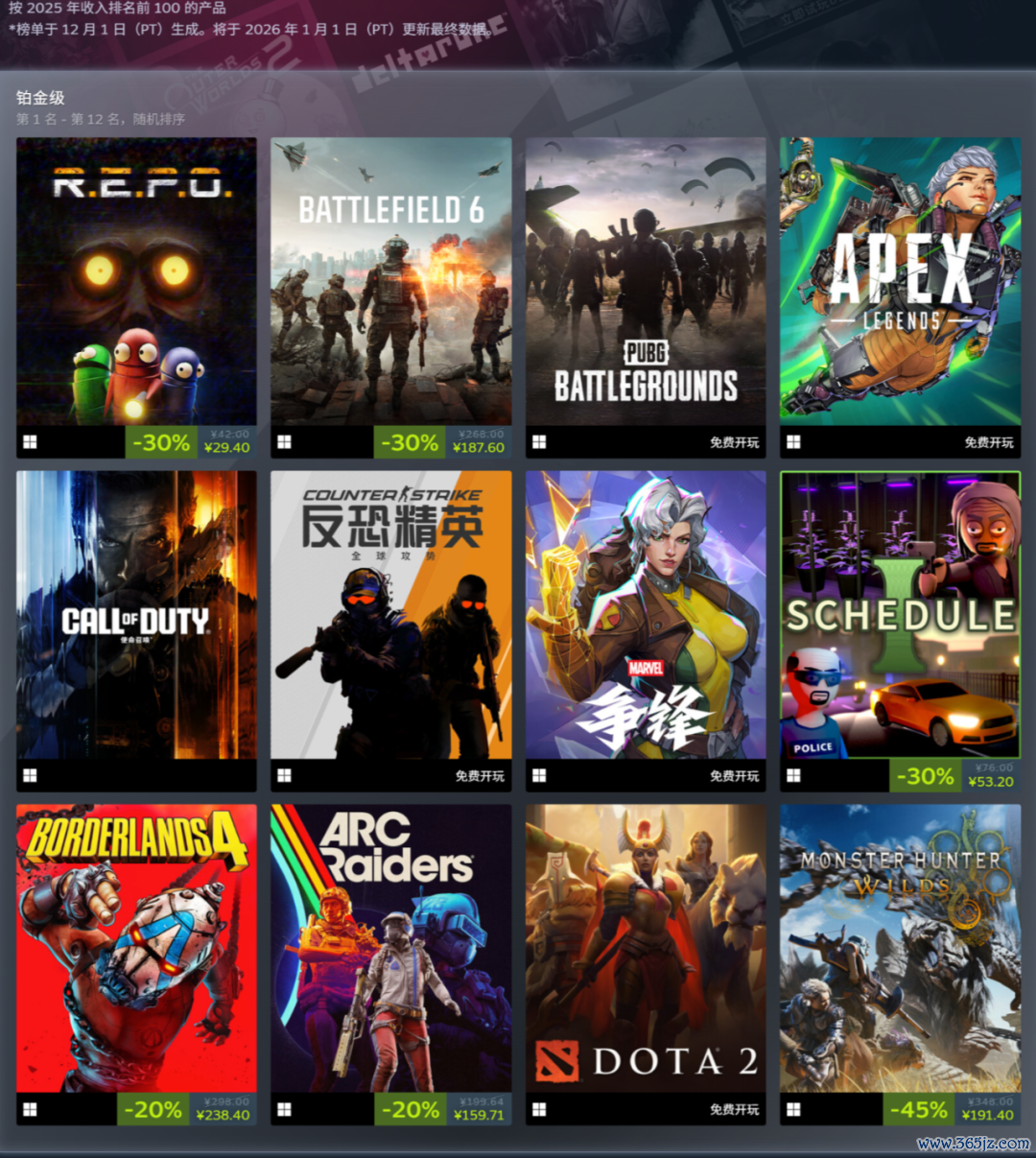 2025年即将结束,V社分享了他们统计的2025年最热销游戏、最热玩游戏、最热新品等数据。各奖项以铂金级、黄金级、白银级、青铜级进行区分,这里仅展示铂金级(前12名)的游戏,随机排序,排名不分先后。